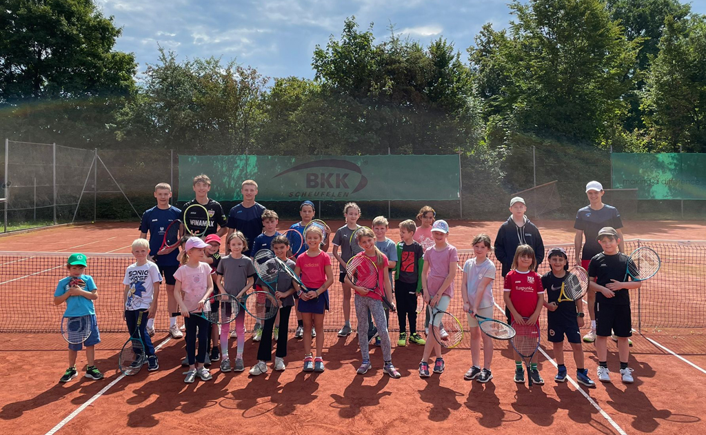 Bei tollem Wetter fand am Dienstag, den 05.08.2025 das Ferienprogramm der Tennisabteilung statt. Die 24 Kinder hatten somit herrliche Bedingungen, Tennis auf dem roten Ascheplatz näher kennenzulernen. Neben Vorhand und Rückhand standen ebenso die Volleys und erste Aufschlagversuche auf dem Programm.