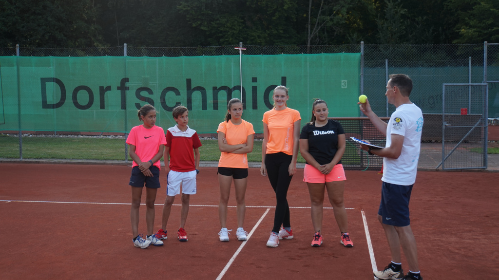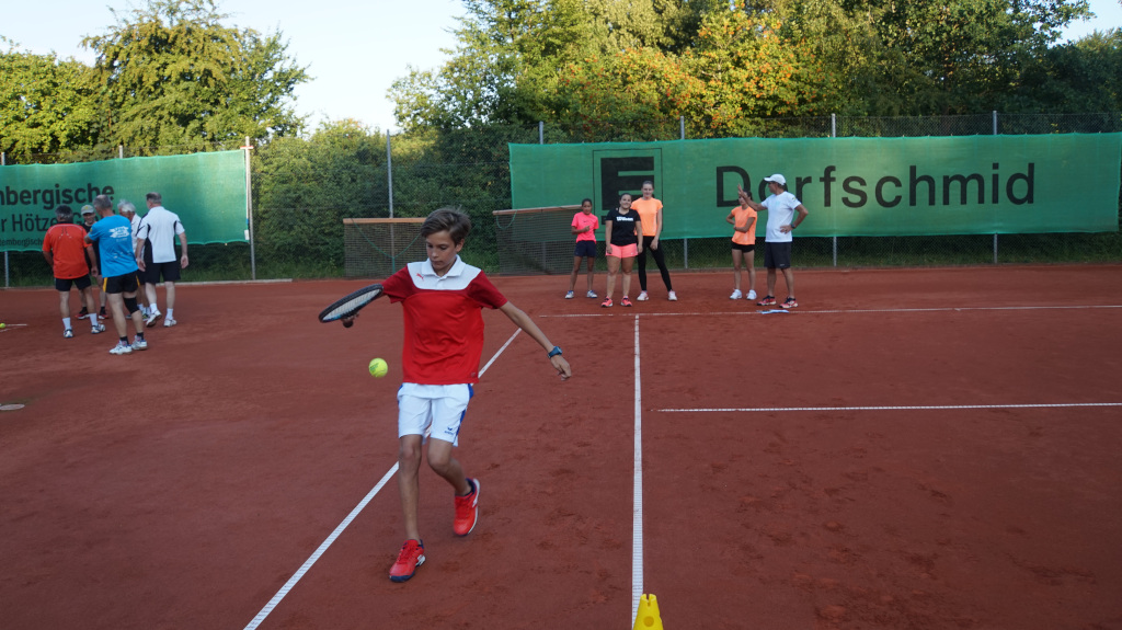 Der Wettkampf wurde in zwei Teile geteilt. Zunächst galt es an vier Stationen das Können der einzelnen Abteilungen unter Beweis zu stellen, das ganze natürlich unter Zeitdruck. In der ersten Station galt es Tennisbälle verteilt auf dem Feld zu sammeln, der nächste des Teams musste diese wieder verteilen, der dritte wieder sammeln usw. Bei der zweiten Station galt es einen Tennisball mit dem Tennisschläger auf dem Tennisplatz einen Parcours entlang zu Rollen. Für die Mannschaften hieß es bei der dritten Station den Tennisball mit Tennisschläger eine bestimmte Strecke zu prellen. Bei der letzten Station mussten die Abteilungsmitglieder jeder Mannschaft einen Tennisball Gegenseitig zuwerfen und dem Ball hinterherlaufen.