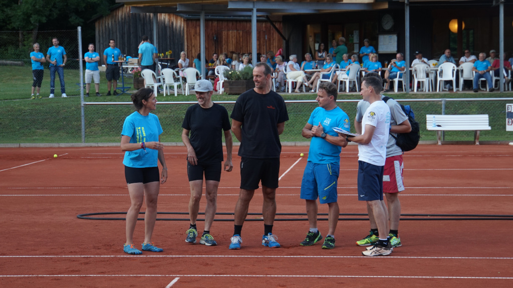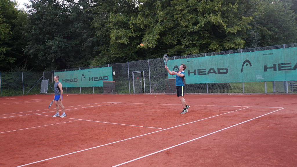Nach den Stationen erfolgte eine kurze Verschnaufpause bevor es dann mit den Doppeln auf dem Midcourt Feld weiterging. Jede der fünf Abteilungen stellte zwei Doppel. Somit wurde in insgesamt fünf Durchgängen, die jeweils acht Minuten dauerten im Modus Jeder gegen Jeden gespielt.